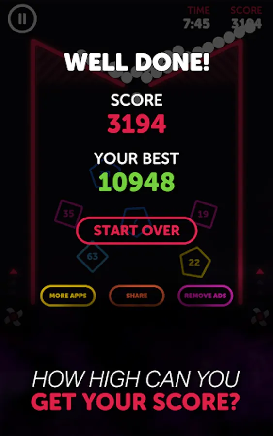 Infinite Ball Shots is a game of Infinite Fun! This ball bounce game is simple for anyone to play. You start with one ball, and as you take your shots you bounce your balls off of the blocks and obstacles, you gain more (and bigger) balls as you go! Download it today and see how many blocks you can bust!