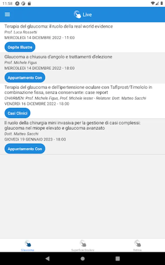 Thanks to the collaboration of highly experienced opinion leaders and communication professionals in the medical-scientific field, the platform guarantees the Ophthalmologist a wide range of updating possibilities: live and as a VIP guest, getting to the heart of the controversial topics on hot and major topics. current events or by taking advantage of interactive and training activities in the classic on-demand mode.