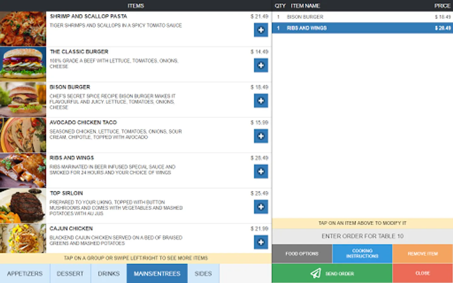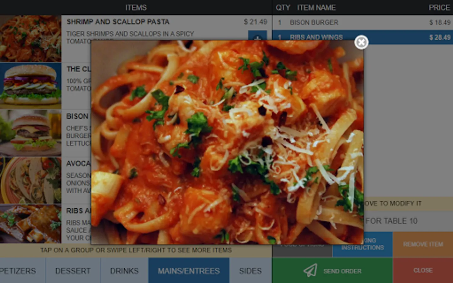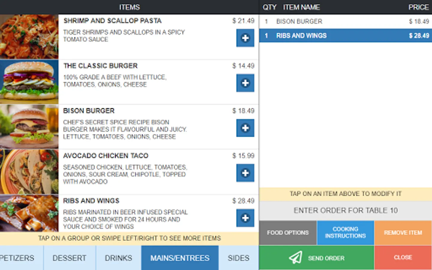 Restaurant POS (point of sale) with a Full-Service Restaurant license and the Patron App add-on license.