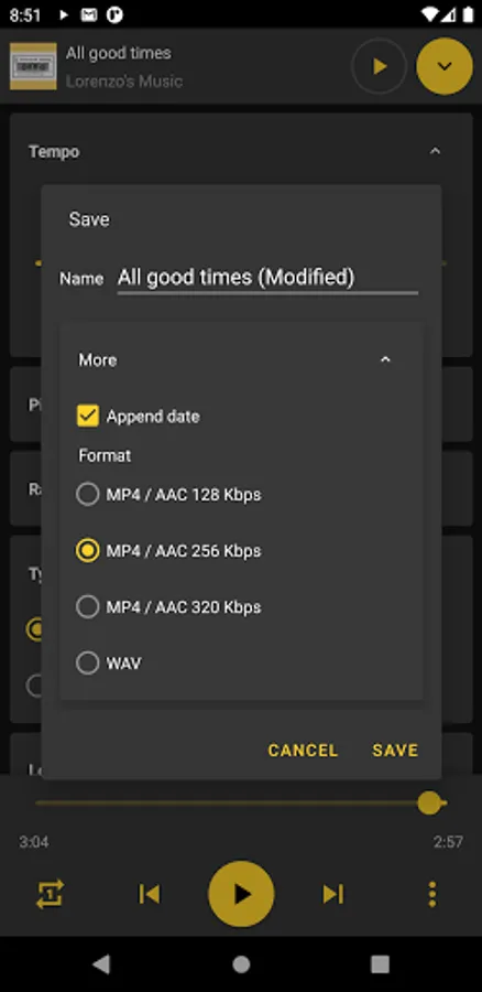 ★ 2 modes of changing Tempo & Pitch - slider (fast) / pad (accurate).