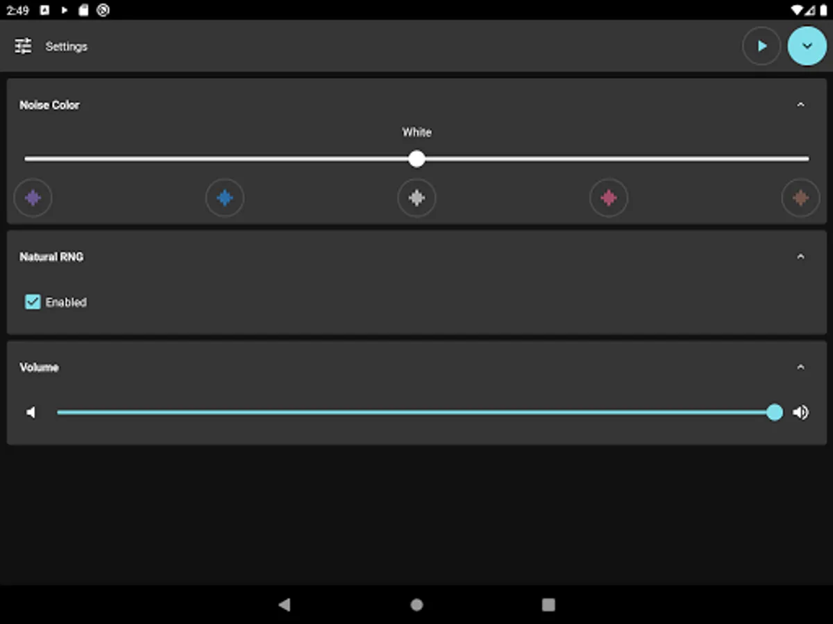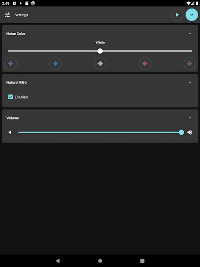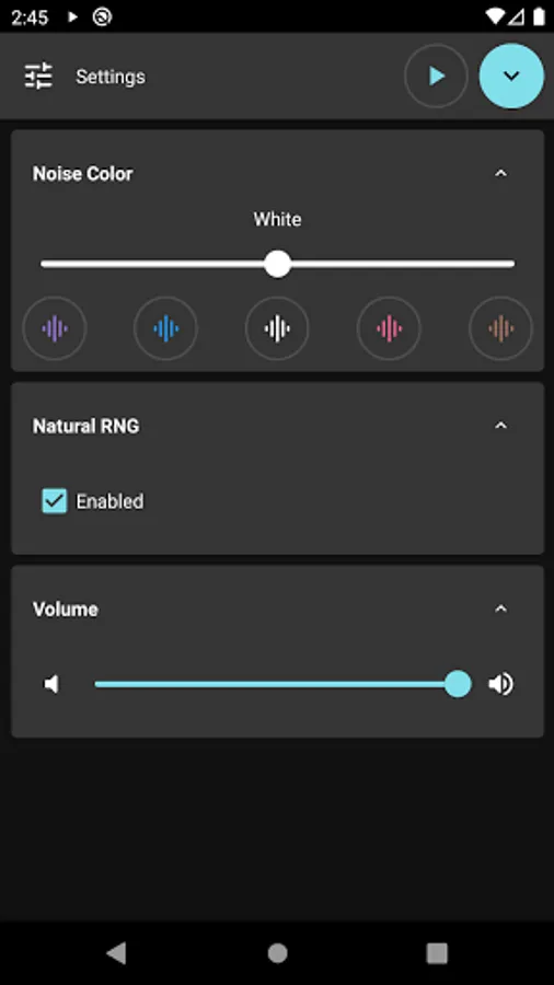You can change color of noise by clicking color-changing button on bottom. If you need more advanced control over noise you can click button with 'sliders'.