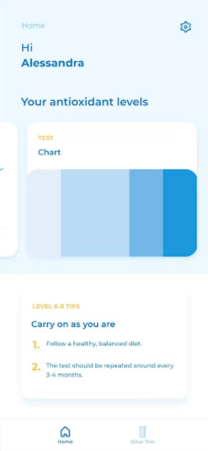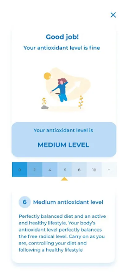 iBlue is the first home test to measure your antioxidant level. These important substances help support your immune system and keep your body and skin healthy. iBlue is fast, accurate and non-invasive, requiring just a small drop of saliva to measure your body’s antioxidant power in just a few minutes. iBlue lets you monitor your antioxidant level regularly in the comfort of your home, without any special tools or skills. Meaning you can establish an antioxidant strategy that’s tailor-made for your needs!