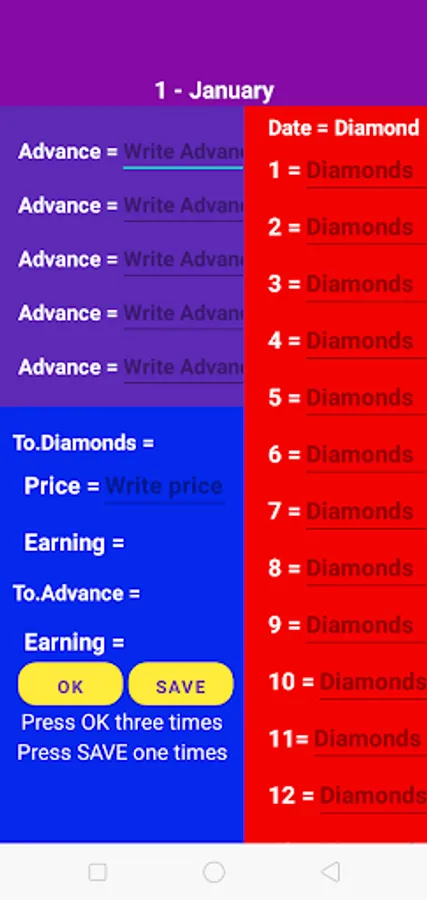 In this application you will find the daily account is automatic and the total monthly account is also automatic.
