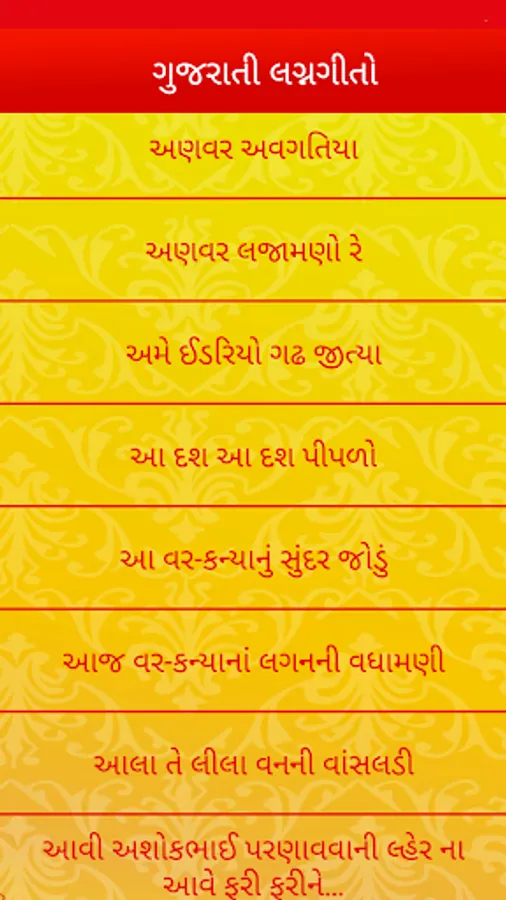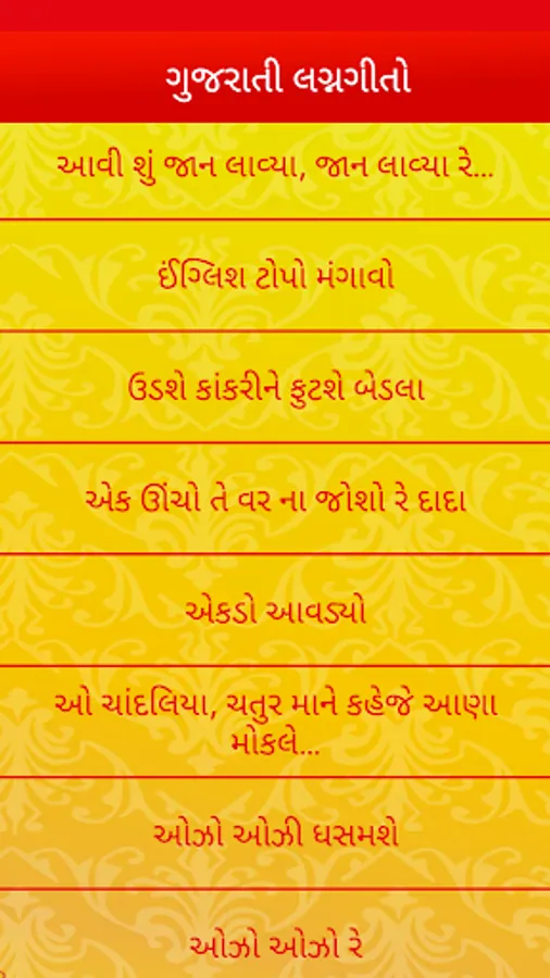 Gujarati Lagna Geet | ગુજરાતી લગ્ન ગીતો application contains superb collection of Gujarati Marriage Songs as ‘Gujarati Marriage Song Lyrics’.