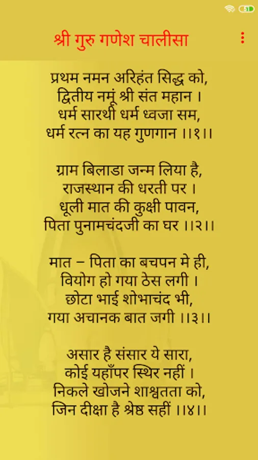 Shri Guru Ganesh Chalisha is a Jain Chalisa dedicated to Sant Jain Muni Param Pujya Shri Ganeshlalaji M.S. who is also knows as 'Karnataka Gaj Keshari' for his discourse.