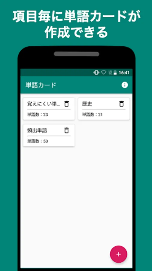 You can create a word card for each item such as English words, kanji, history, etc.