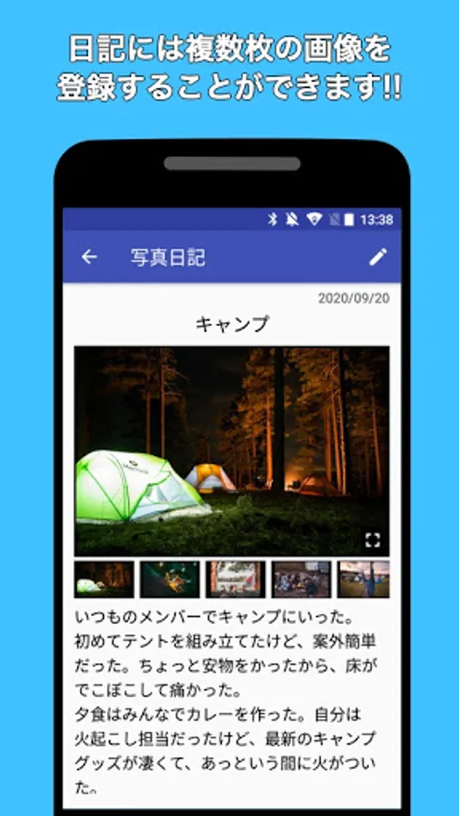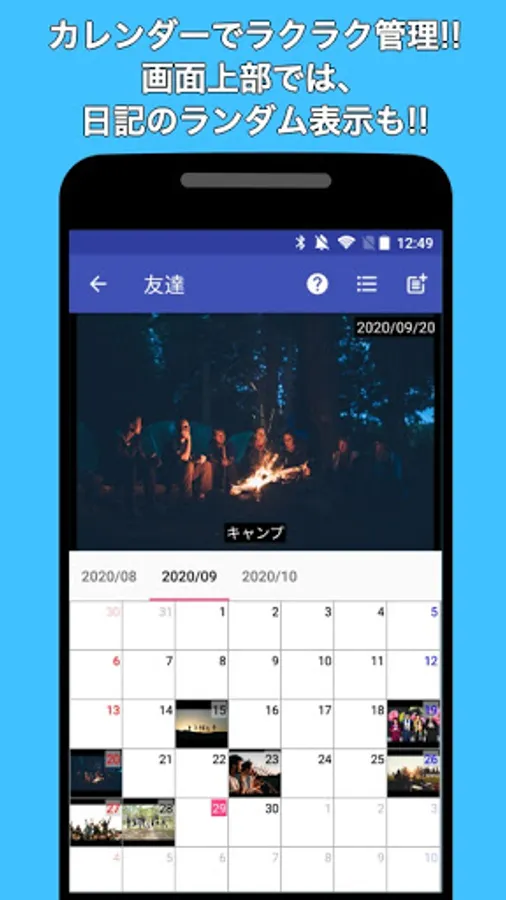 The diary can be managed with a calendar, so you can look back at a glance. By tapping the calendar, you can view the diary registered on that day or register a new one.