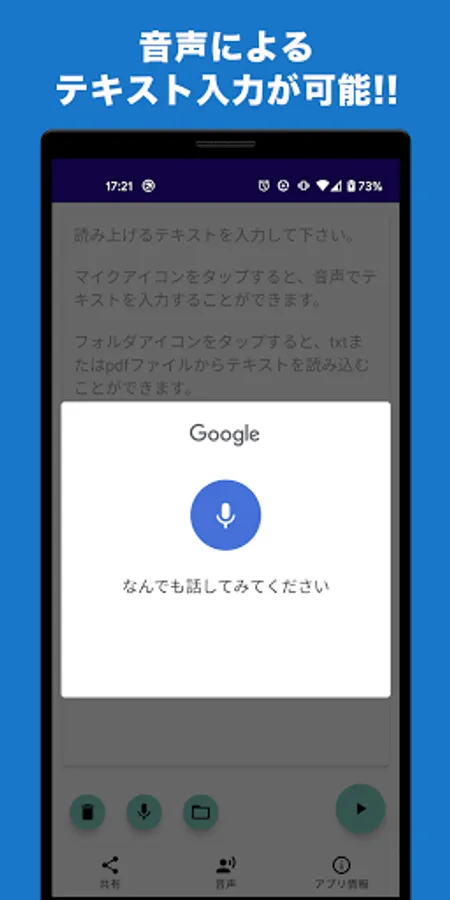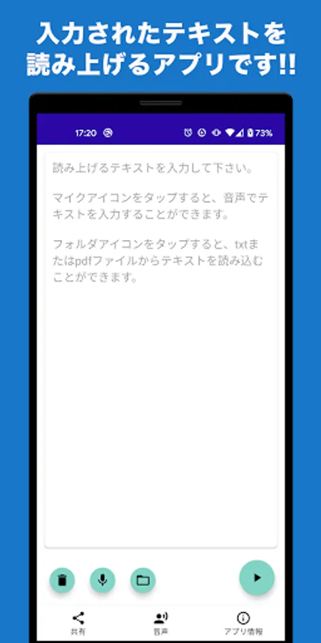 In addition to keyboard input, you can input by voice and read PDF and TXT files.