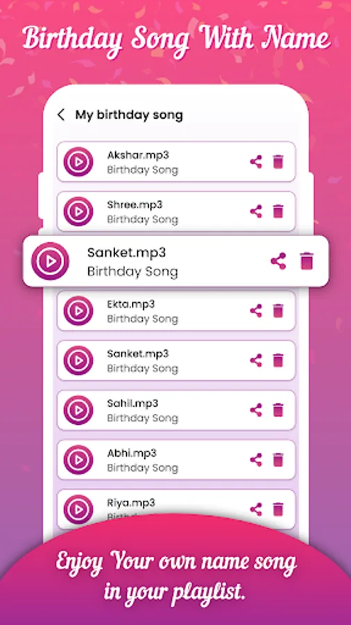 Birthday Song with Name - My Name Birthday Song Uniquely wish a birthday using a song with a name feature. Download and share easily with your best one and wish the best to him/her on a special day. Easy to create, share, and wish a day with an amazing song.