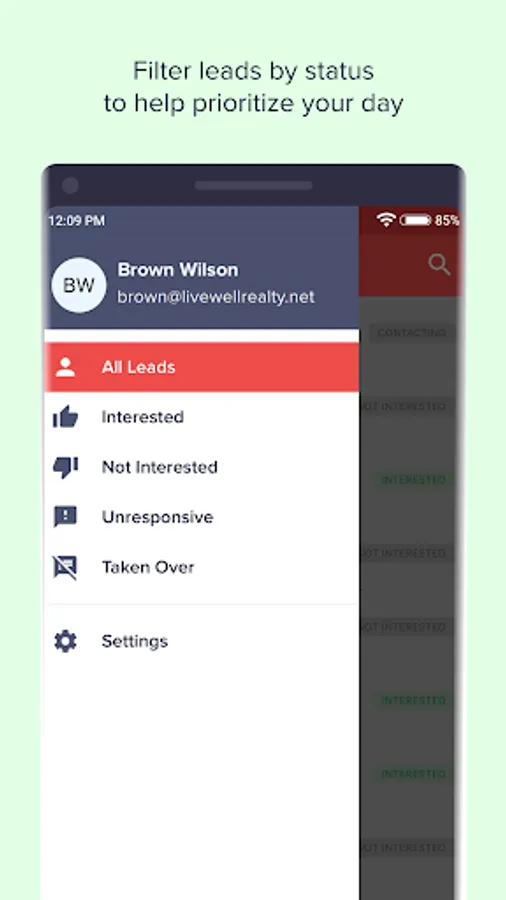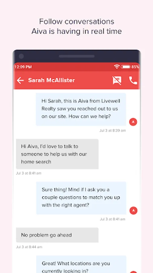 Our mobile app lets you access your leads on the go, follow conversations as they happen, stop conversations at any time, and receive notificiations for hot leads in real time.