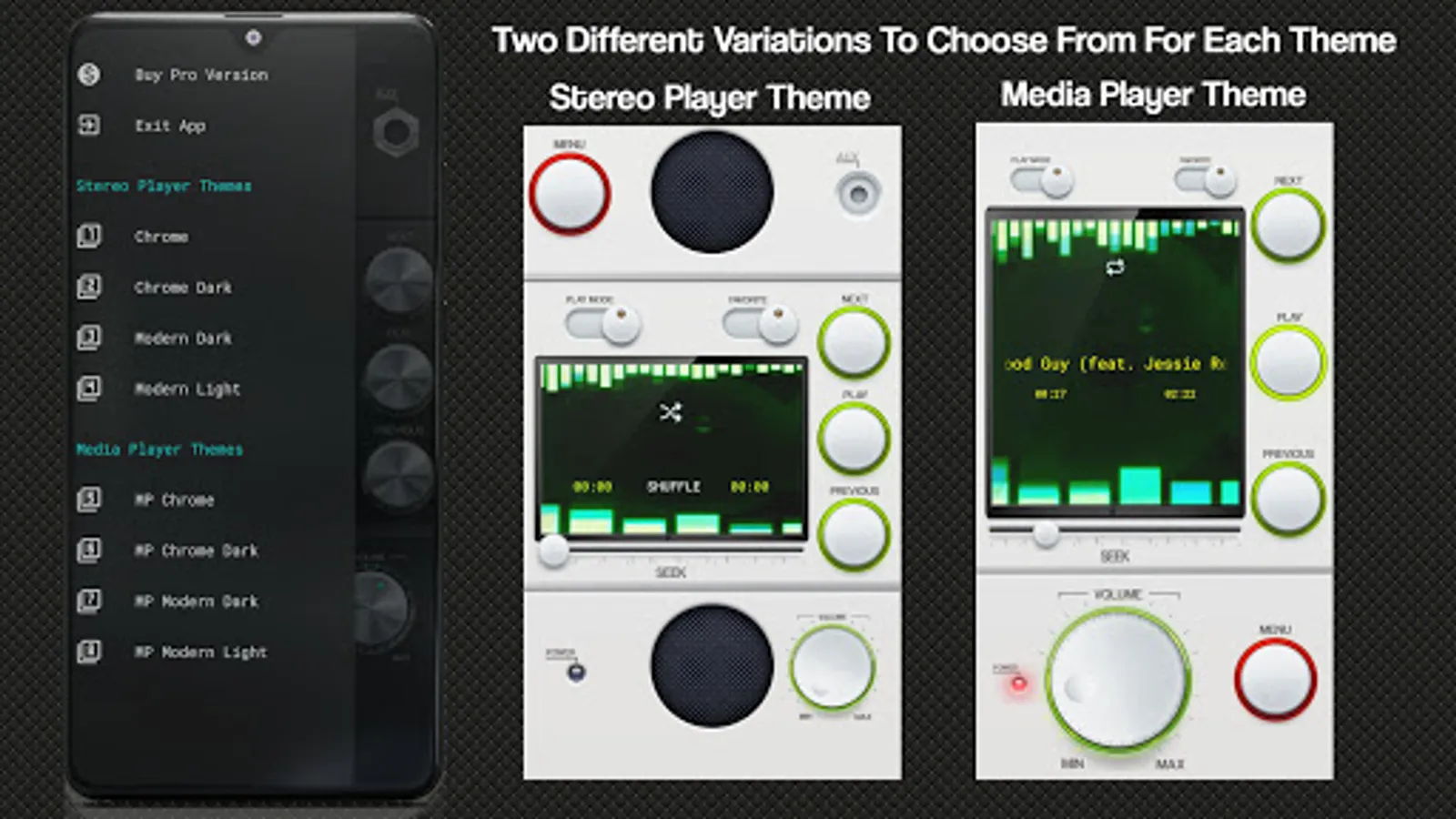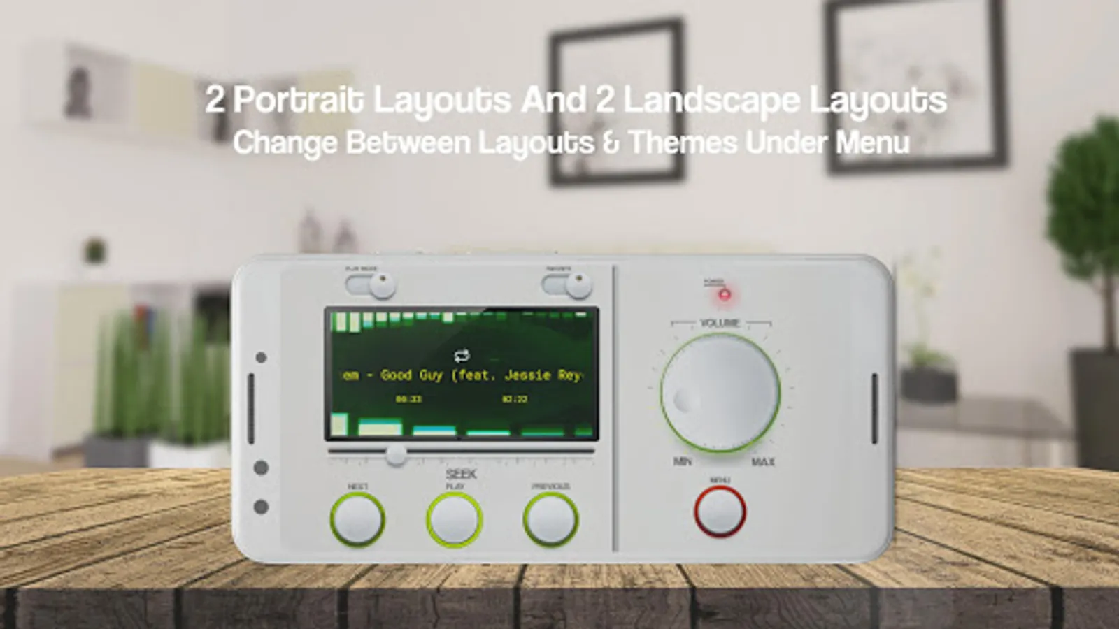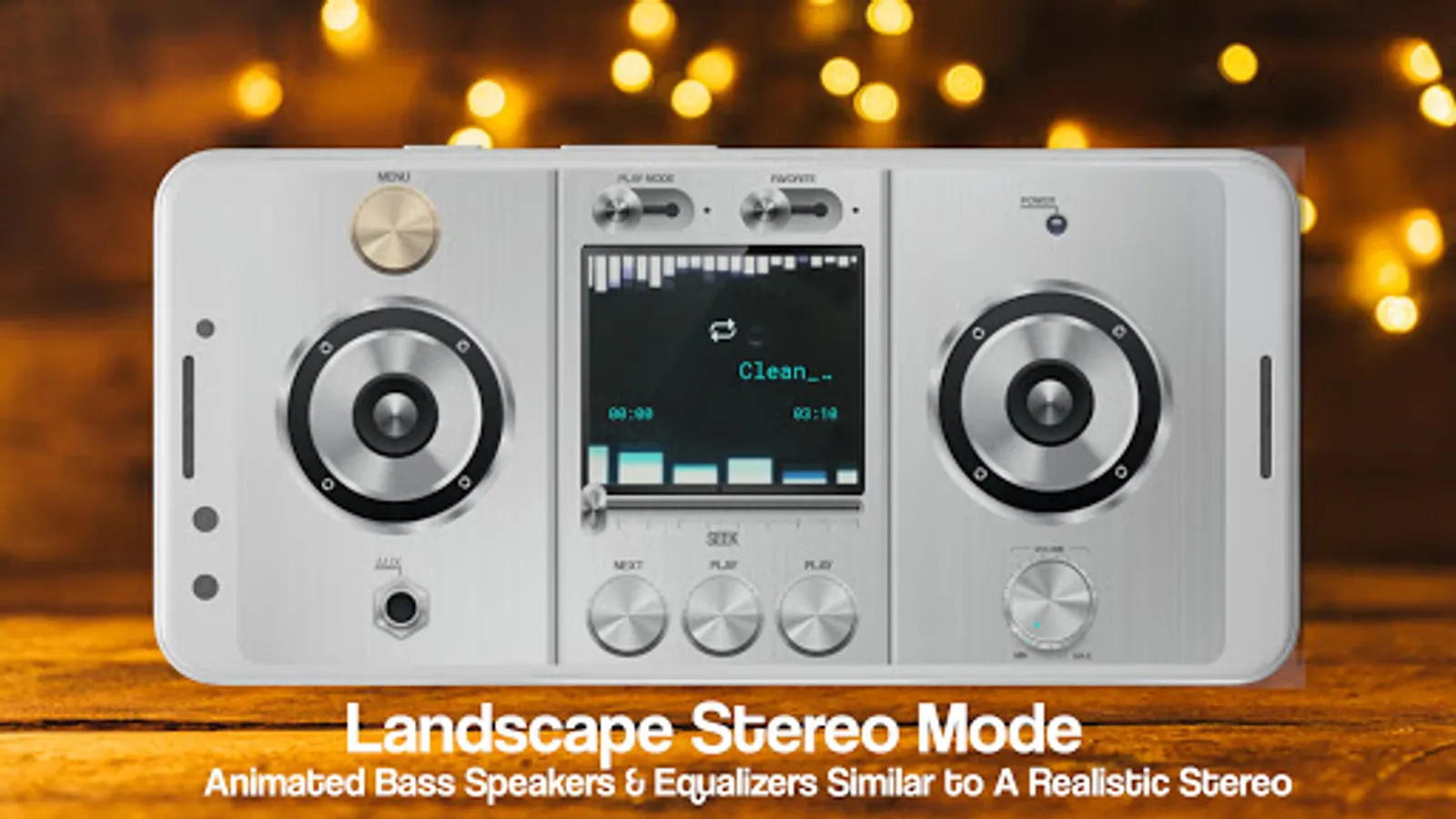 Choose between a landscape and portrait boombox or stereo layout with a built-in equalizer. Currently only one equalizer option is available within the audio player, future equalizer will be available in an update.