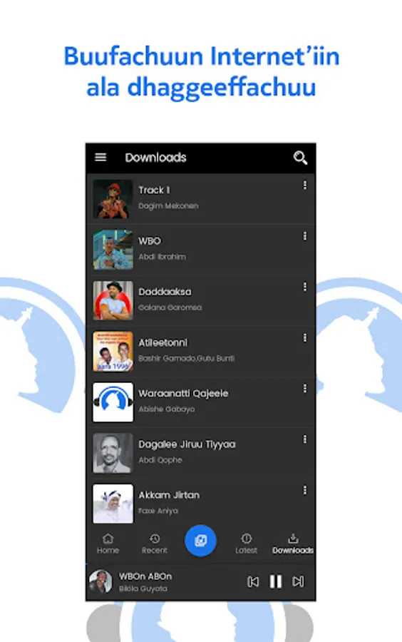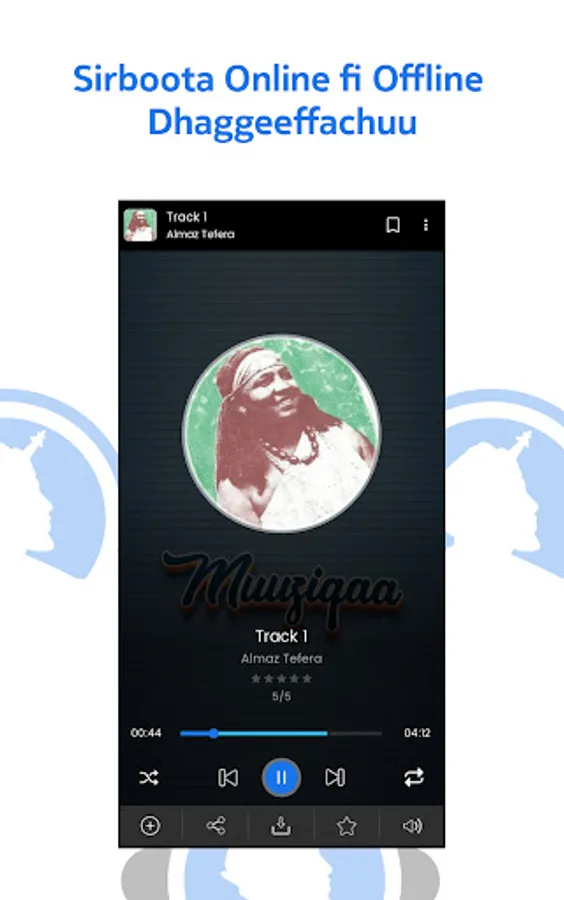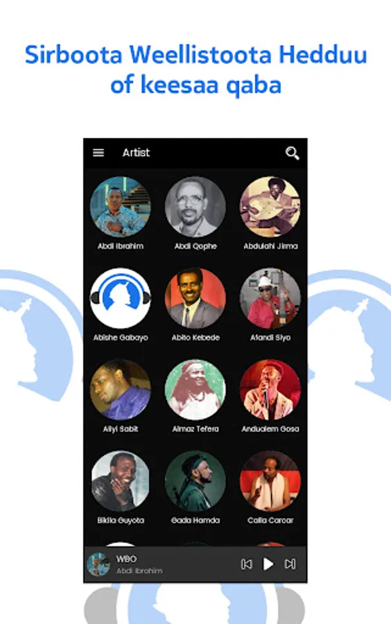 Muzika app is a mobile application where you can find all Oromo (Afaan Oromoo) music by audio Including The new and oldest music. You can Search the music by Category, Artists, Title and Album. And you can also access the music offline and online. The music you get in this app will protect the copyright of the musician Weellisaa.