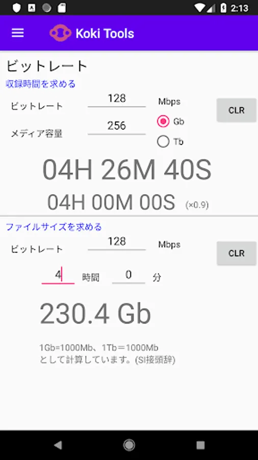 You can use the calculator to calculate the recording time and battery life, but you can use the specialized tools to calculate it quickly.