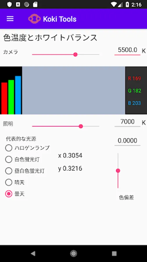 You can see how the gray reproduction color changes as the color temperature of the light changes, depending on the color temperature setting of the camera.