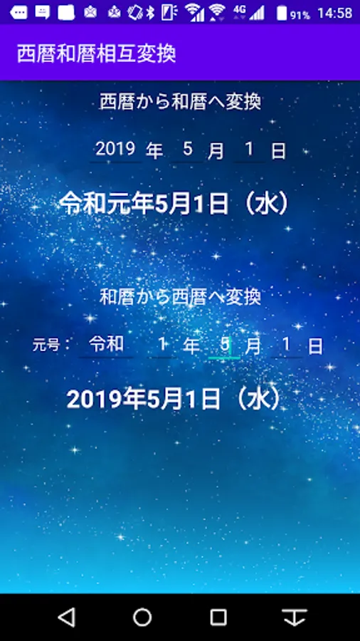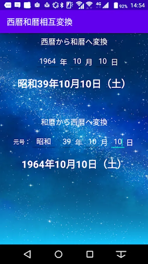 You can convert between the Western calendar to the Japanese calendar and the Japanese calendar to the Western calendar on the same screen.