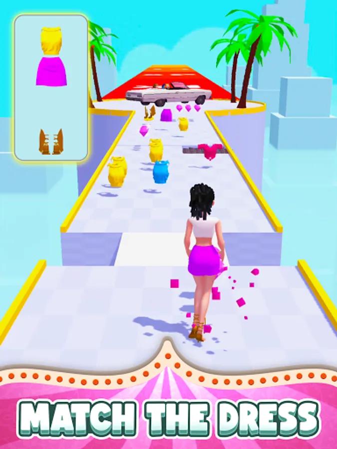 Swipe left and right. Navigate through challenging obstacles and collect as many gems as you can. See what happens when you pick out different colored outfits. It’s all about dressing up or down so be sure to aim for that best look in the end!