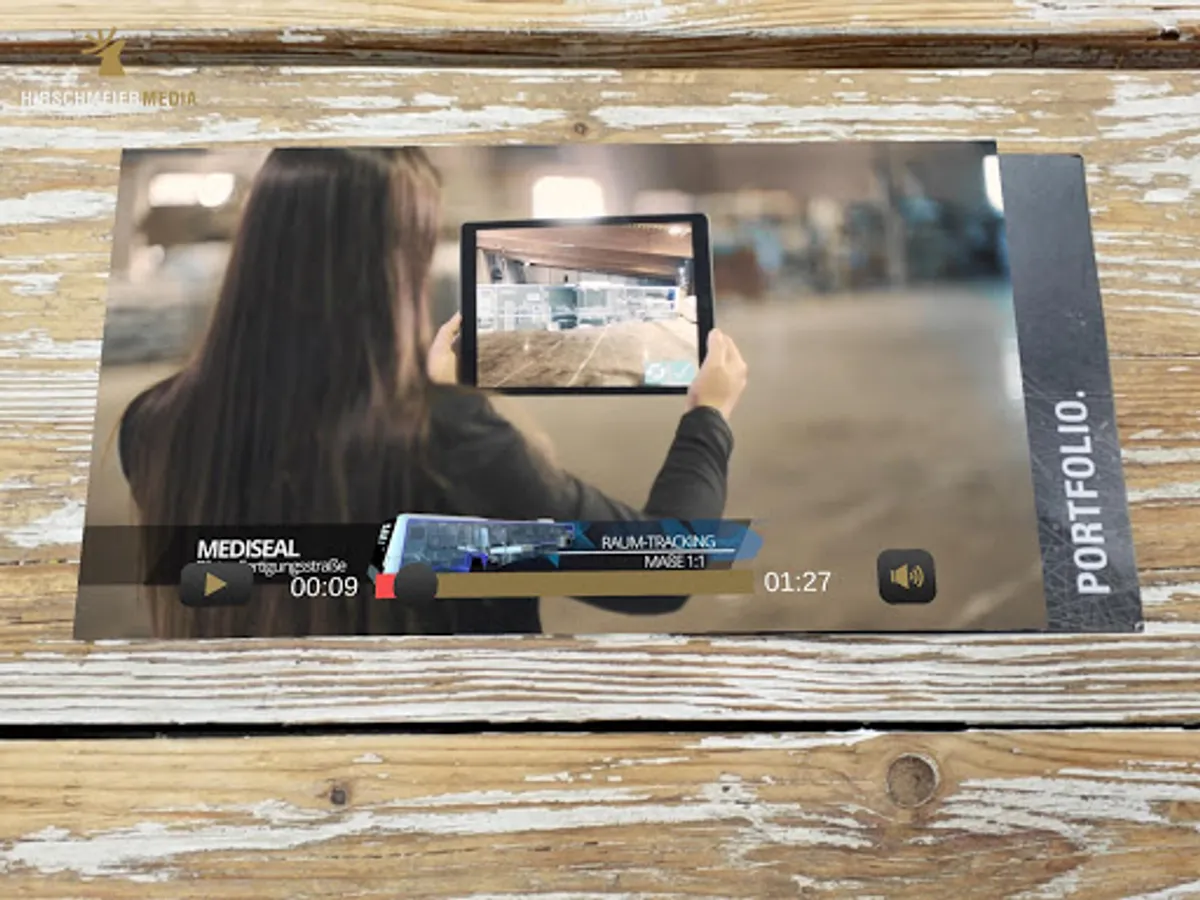Bringing printed matter to life is the idea of the AR reader from Hirschmeier Media. Discover the possibilities of expanding brochures, posters or books with digital content such as videos, 3D models, animations. It is also possible with the app to always display the current contact person without having to print a new brochure. With the AR Reader, valuable additional information can be provided for the reader and viewer, which cannot be displayed so clearly just by printing. Of course, other content can also be included, if desired.