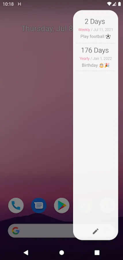 • Countdown day: Add important days through the floating window, such as birthday, Christmas, etc. it will show how many days left until this day