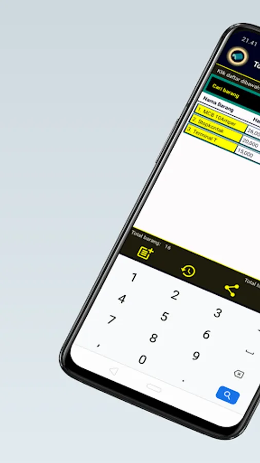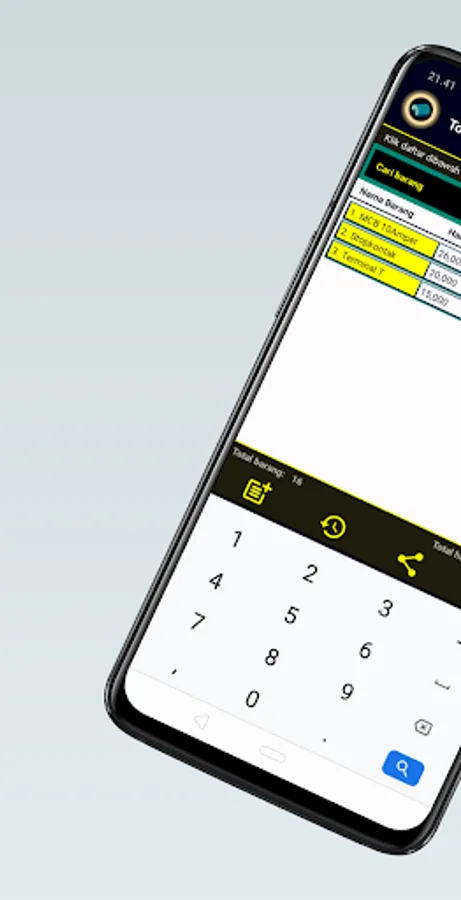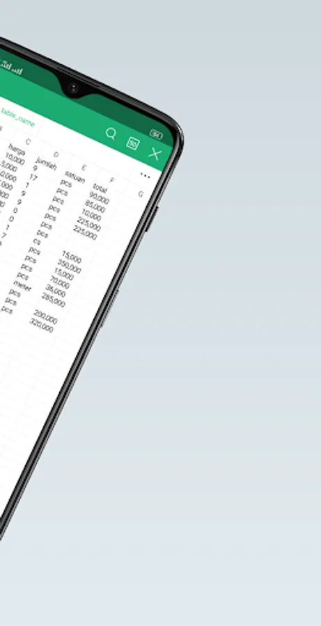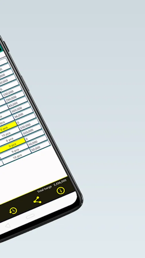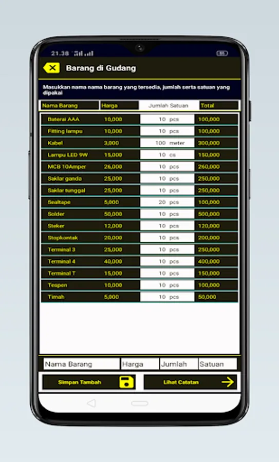 The data column is in the form of the name of the item, the value in the form of price, the amount and the unit as well as the total value of the item.