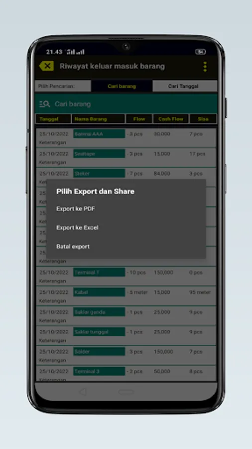 Monitoring and controlling the availability of goods or stock in the warehouse, including in and out of goods, as well as distributing data via pdf, image, and excel.