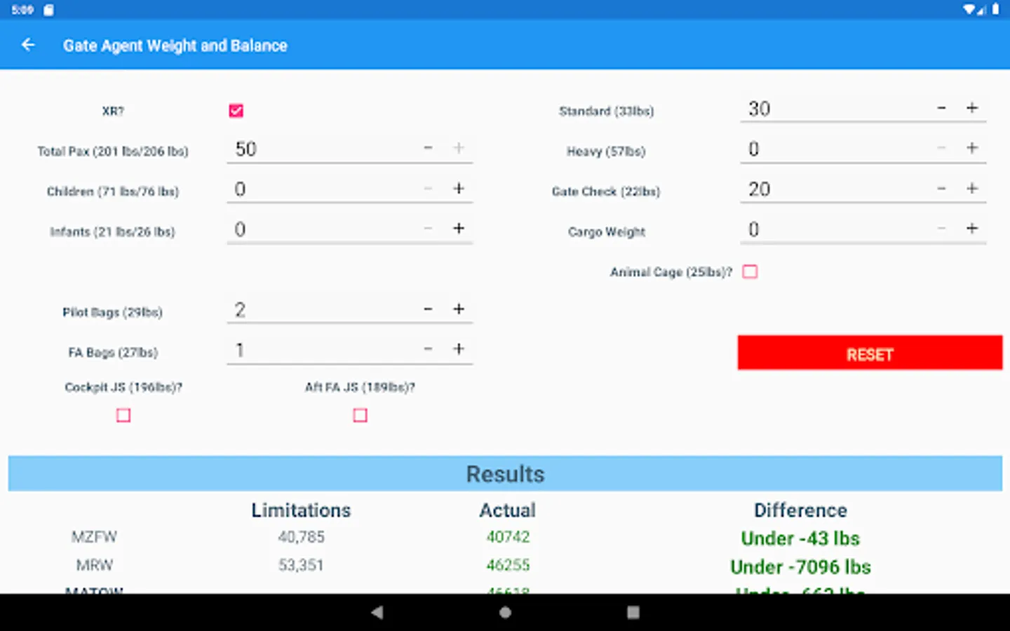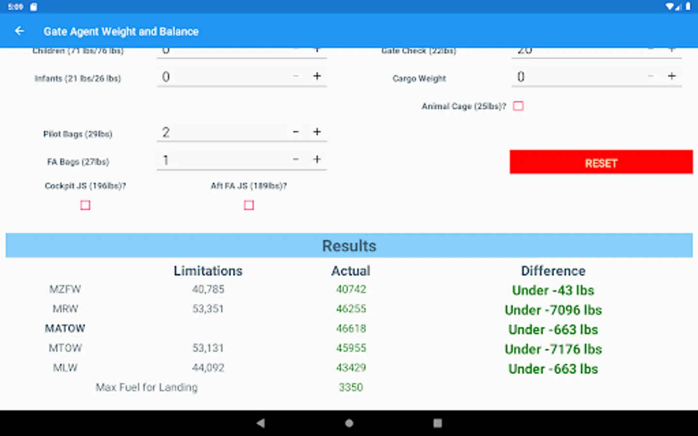Ability to calculate how many bags and passengers you can take on an EMB-145 aircraft.