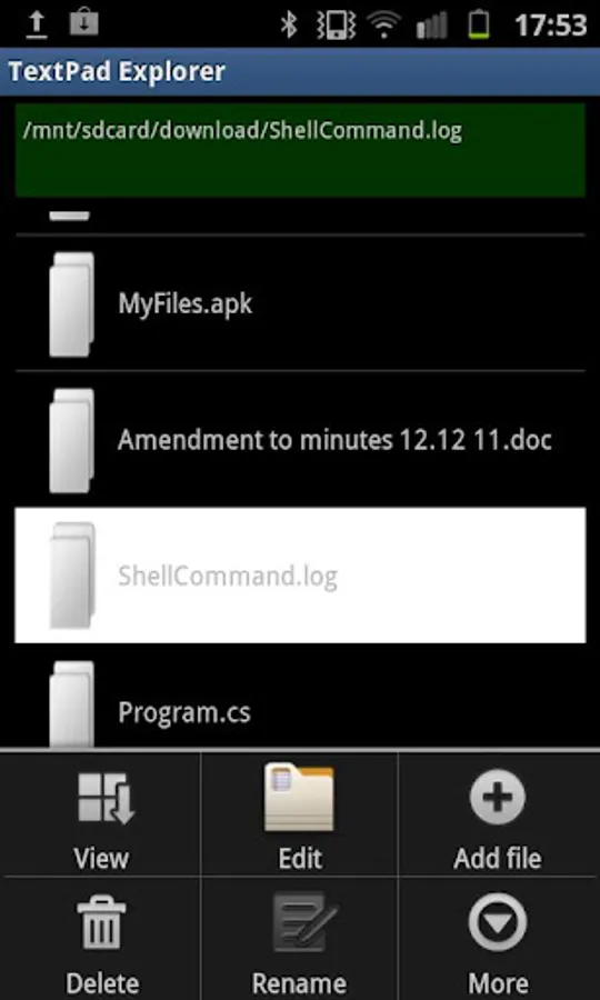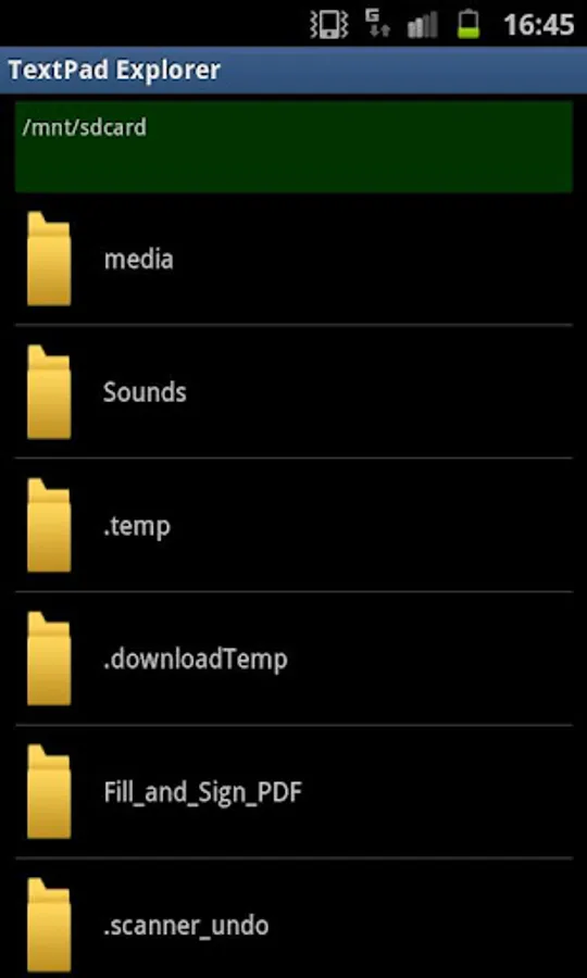 TextPad Explorer is a useful utility program that allows you, the user, to browse around all the files residing on your mobile device (not just those residing on the external storage device). The Android device runs a version of unix operating system, and all directories and files under the root directory can be navigated around along with those on the external storage directory, a feature not offered by some other file utility programs.