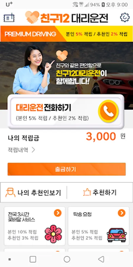 ☞ Cash withdrawal if the total amount of flower delivery, surrogate driving, and vehicle consignment is 10,000 won or more
