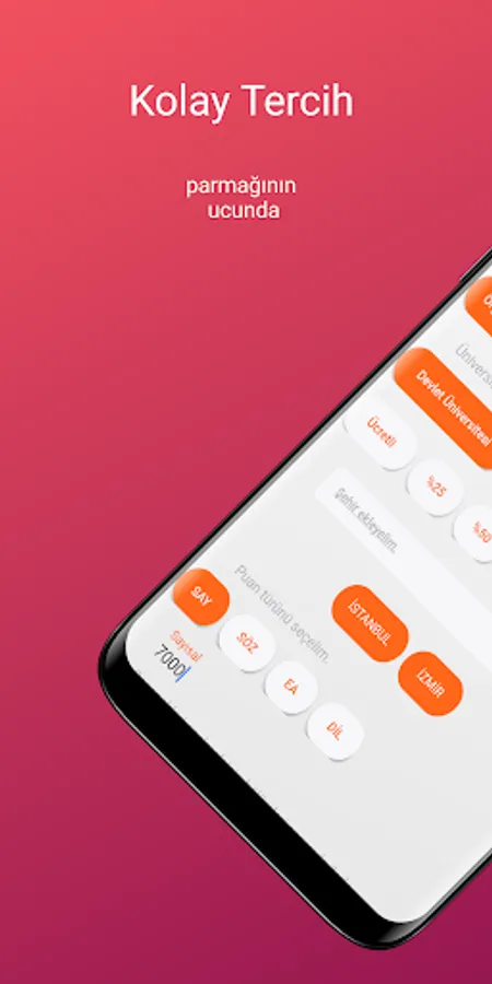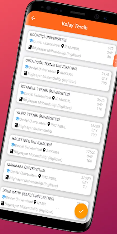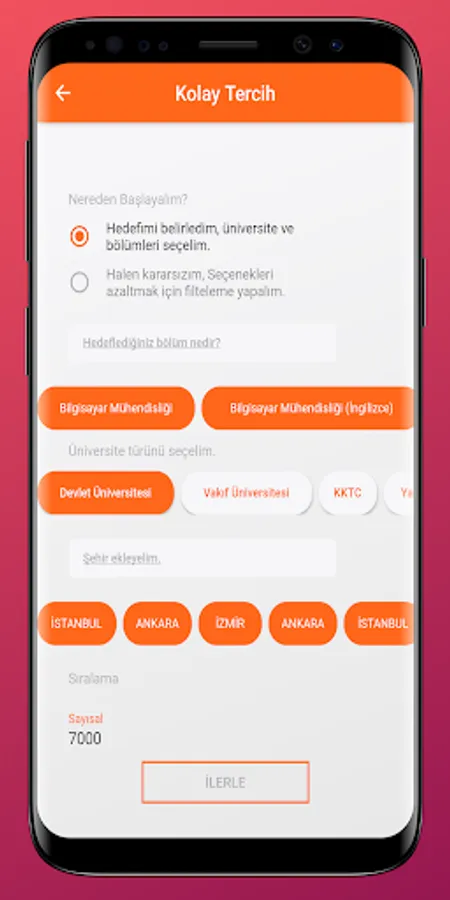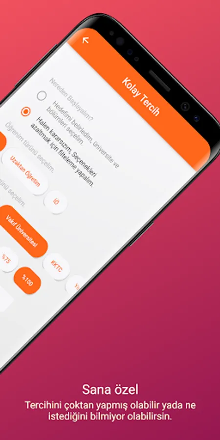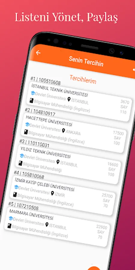 The application, which can be used without internet, which you can use to create the Preference List, has undergraduate and associate degree sections. There are more than 2000 different selectable sections in total. At this point, the application flow is designed to facilitate the preference step.