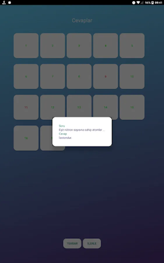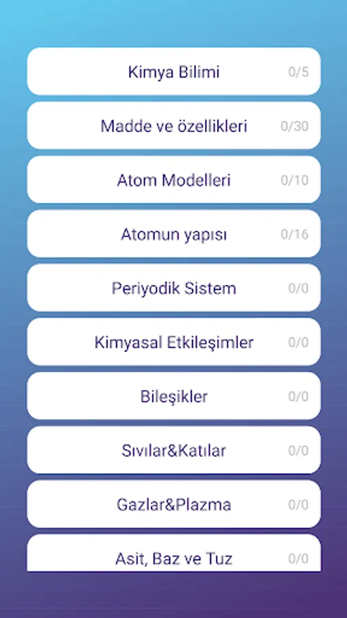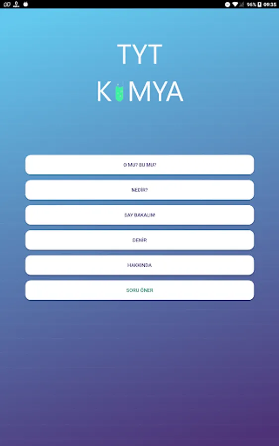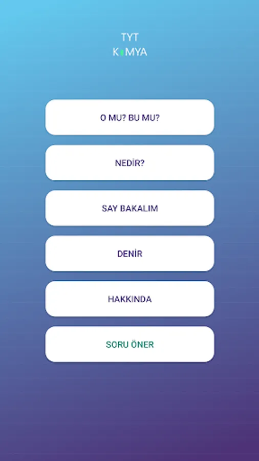With this app prepared for the basic proficiency test chemistry lesson you will solve single-answer questions. So you'll be able to repeat your basic knowledge as you play with this app. You can also play with your friends. You can repeat an entire unit in just 5-10 minutes, or you can regain the time you lost on your journeys. The aim of this application is to save the repetition of the tediousness of the course. We have prepared an evaluation page and a answers page for each section. There are 4 basic game types.