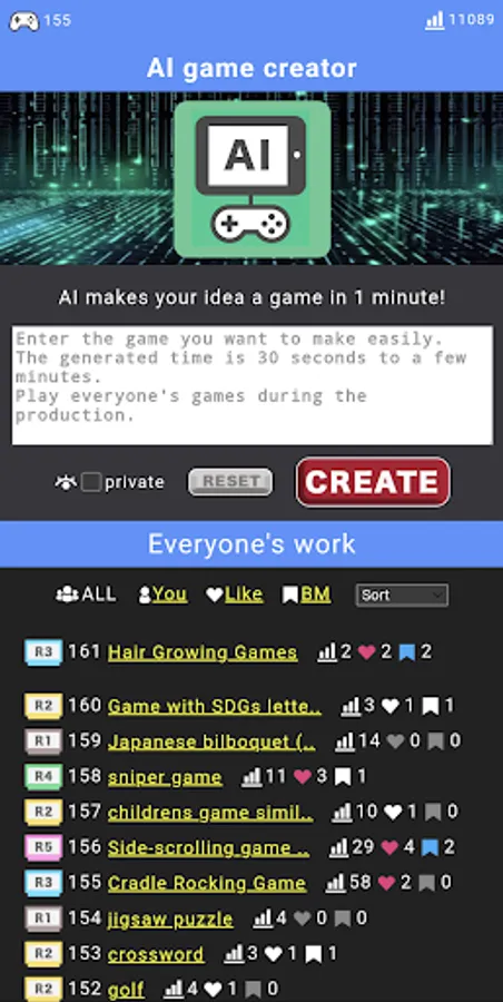 You can also enjoy over 100 AI games made by everyone! What games and prompts are there?