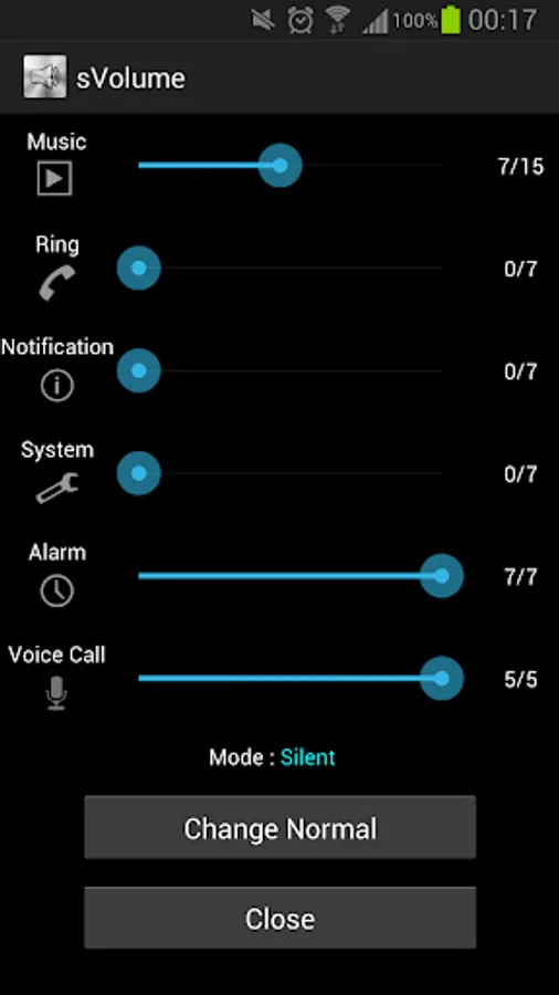 I can set the volume music, incoming call, notification on one screen, system, alarm, call.