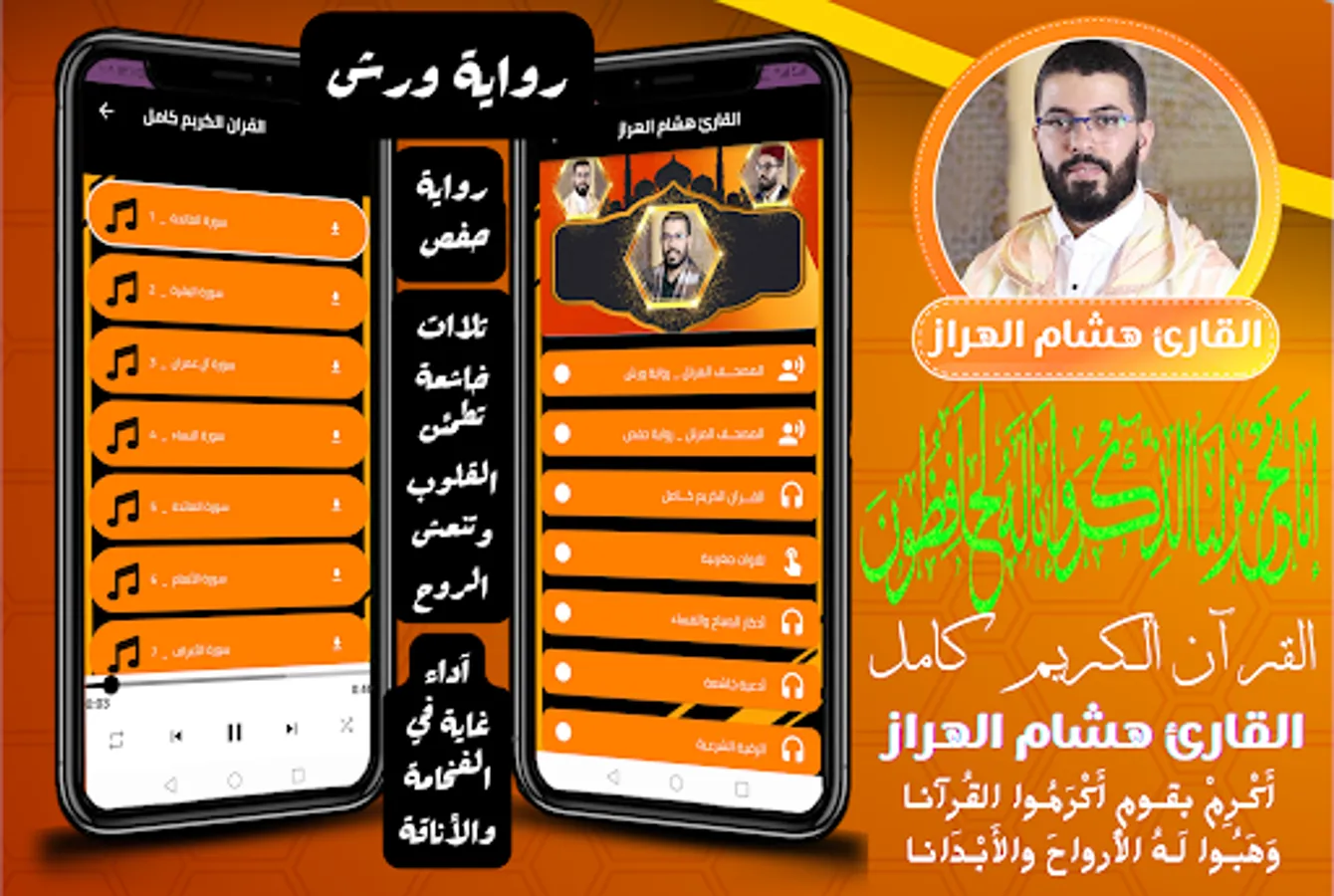 ⬅️ The application of the Noble Qur’an is also distinguished by the voice of Sheikh Hisham Al-Haraz by being simple and elegant, and it includes the Holy Qur’an with the narration of Hafs and the entire Holy Qur’an, the voice of Warsh with the voice of Sheikh Hisham Al-Haraz Al-Maghribi