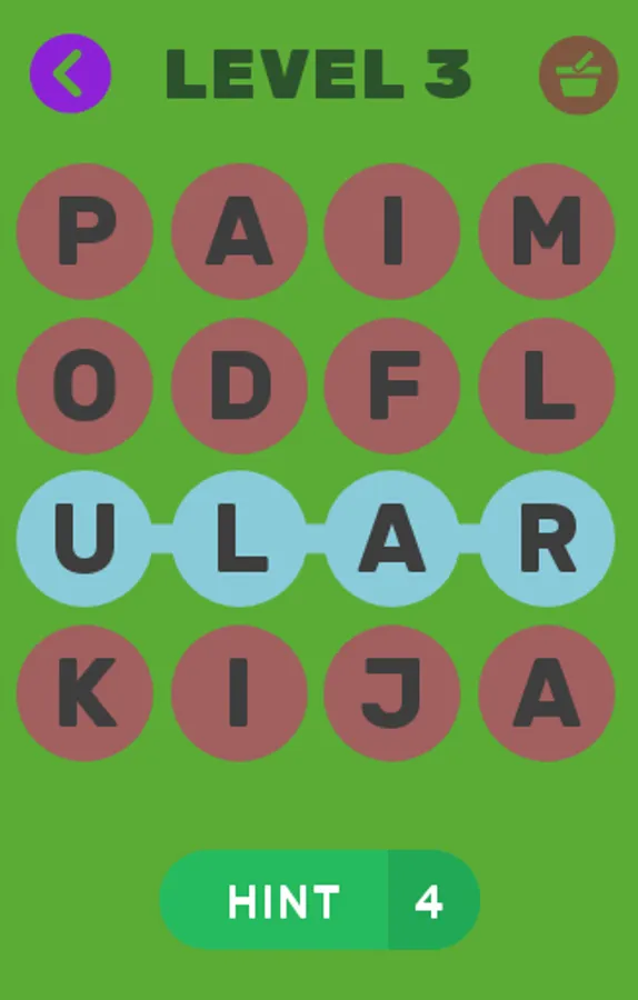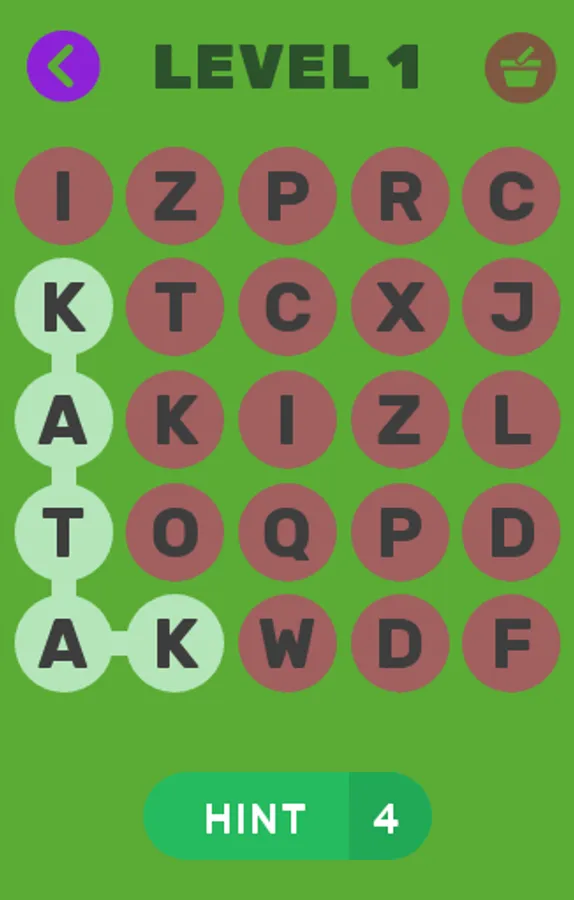 Terdapat butang "Hint" dan butang "Ask friends" untuk meminta pertolongan.