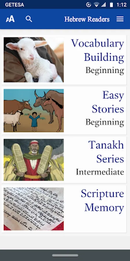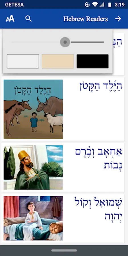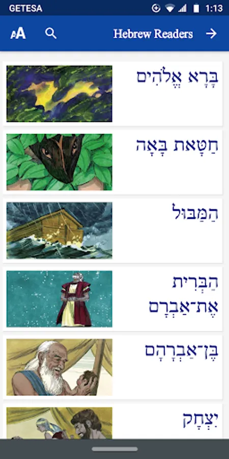 The 37 readers range from vocabulary-building picture books and easy stories to intermediate stories based on excerpts from the Biblical text itself. The intermediate stories include a glossary at the end with words that occur less than 100 times in the Hebrew Bible.
