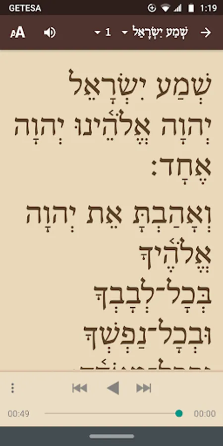 A scripture memory section is also included, with frequently memorized passages such as Genesis 1:1, the Shema, Psalm 23, and others. Listen while you read to aid in memorization.