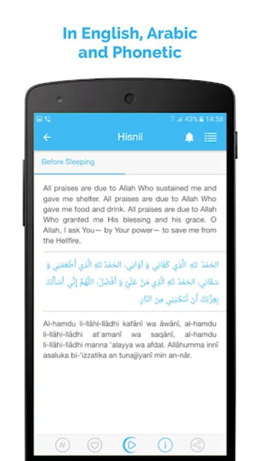 • New quality audio for each dua; specially designed for non-Arabic speakers.