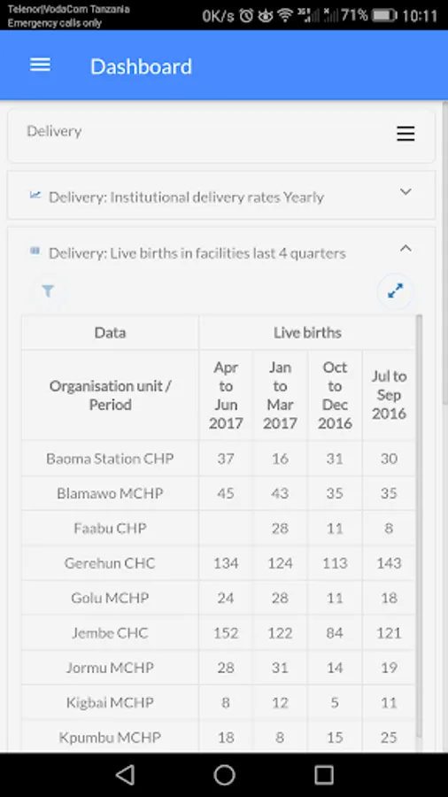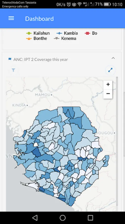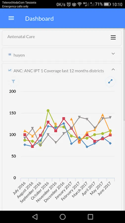 DHIS2 Interactive dashboard, with support for switching visualization between charts, tables, maps, with more control of data on android device, from HISP Tanzania