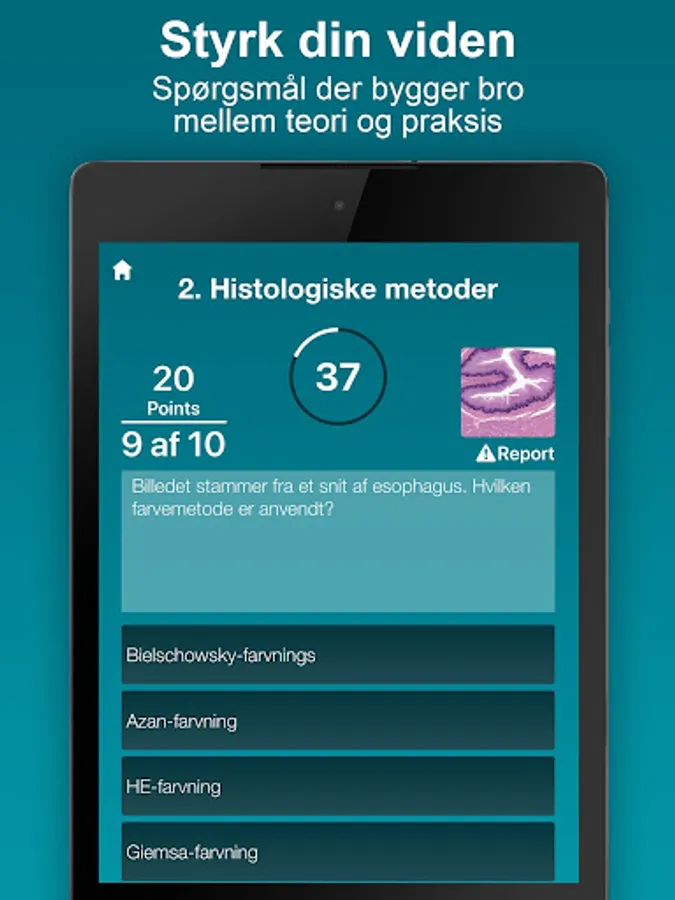 When I read histology myself, I lacked a simple and good quiz tool, to get trained and repeated the textual curriculum. Later I became a student teacher in histology at Aarhus University and got the idea to make the app I had missed when I had the subject. The idea and vision were simple: to gather the most central of the syllabus in histology and cell biology and to supplement it with a lot of pictures of preparations to create a good overview of the subject as well as to form a bridge between the theoretical curriculum and the ability to recognize cells and histological structures for the exam.