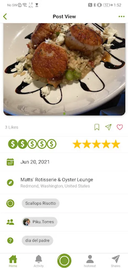 - Discover: quickly see what people in your historeat network are having to eat and determine how much they liked it.