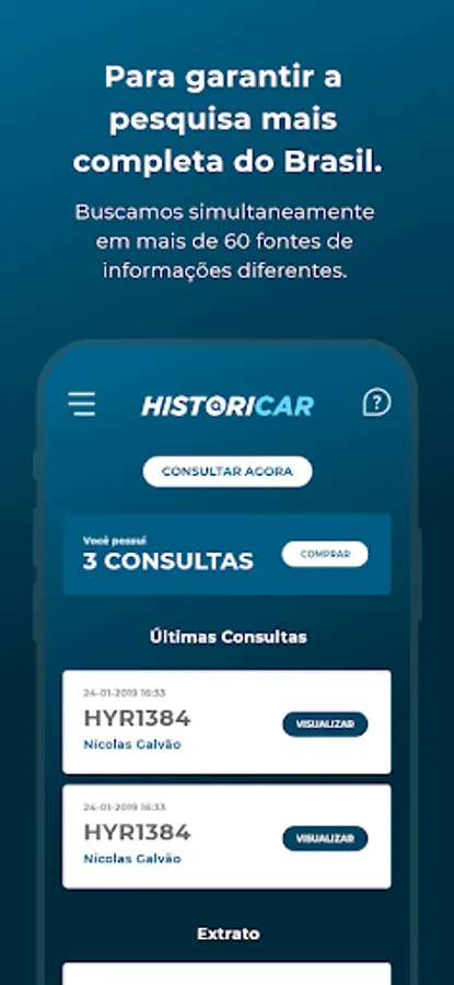 Just with the vehicle's license plate, have access to more than 60 information such as Auction, RENAVAM, Chassis, State Debts and Fines, Claim, Encumbrance, Theft and Theft and much more!