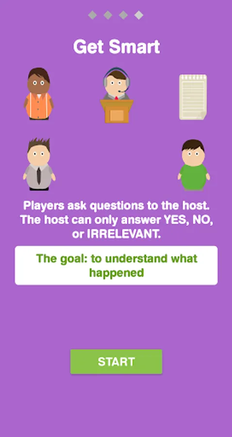 4) Players ask questions to the host. The host can only answer "Yes", "No" or "Irrelevant".