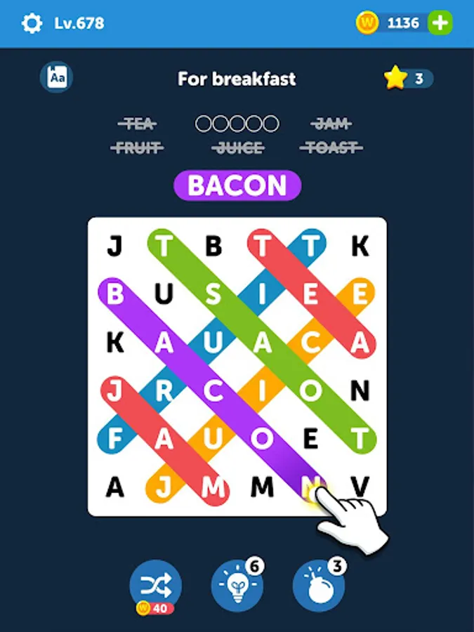 - Search and find words! Swipe up, down, left, right or diagonally to link and connect words!