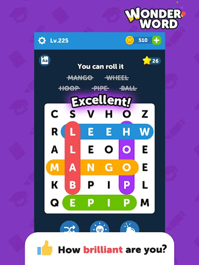 Wonder Word is a free fun word search game. It starts out easy but gets progressively more challenging. Beat as many puzzles as you can to increase your intelligence score! It’s the most addictive word puzzle game you’ve ever played!