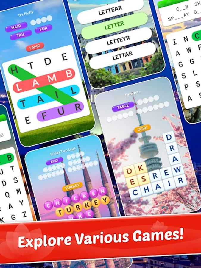 Searching for brain games? Look no further! This free crossword game with charming landscapes is your final destination! You may search and find hidden words, enjoy the fun of crushing letters, and travel around the world at the same time. It's a fantastic way to relax both your body and mind!