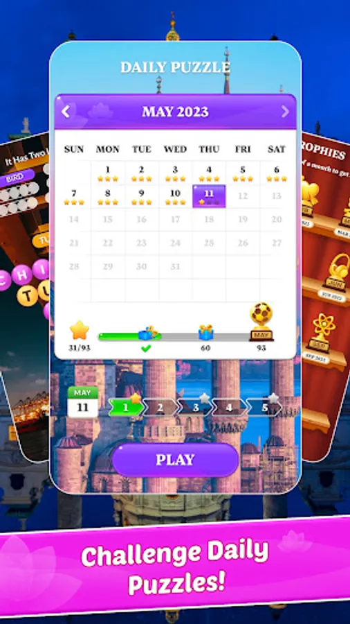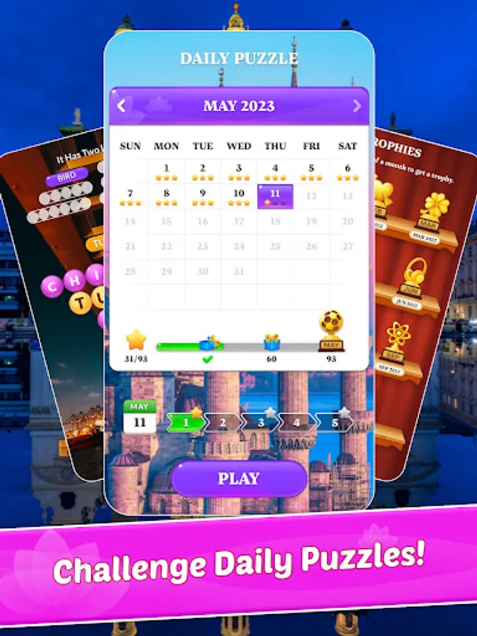 In Word Town, there are numerous challenging puzzles to sharpen your mind! Solving puzzles along the journey to different cities around the world will double your fun! Moreover, competing with friends and family members in this game would strengthen your associations!
