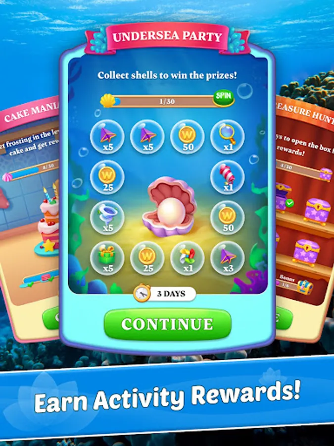 As you progress in this game, you may also unlock a lot of surprises. The further you progress, the more you will explore. The Undersea Party is a collecting activity that will give you big rewards. The Daily Puzzle gives you a chance to collect exquisite trophies. Discover more by yourself to enjoy the fun of being an explorer.