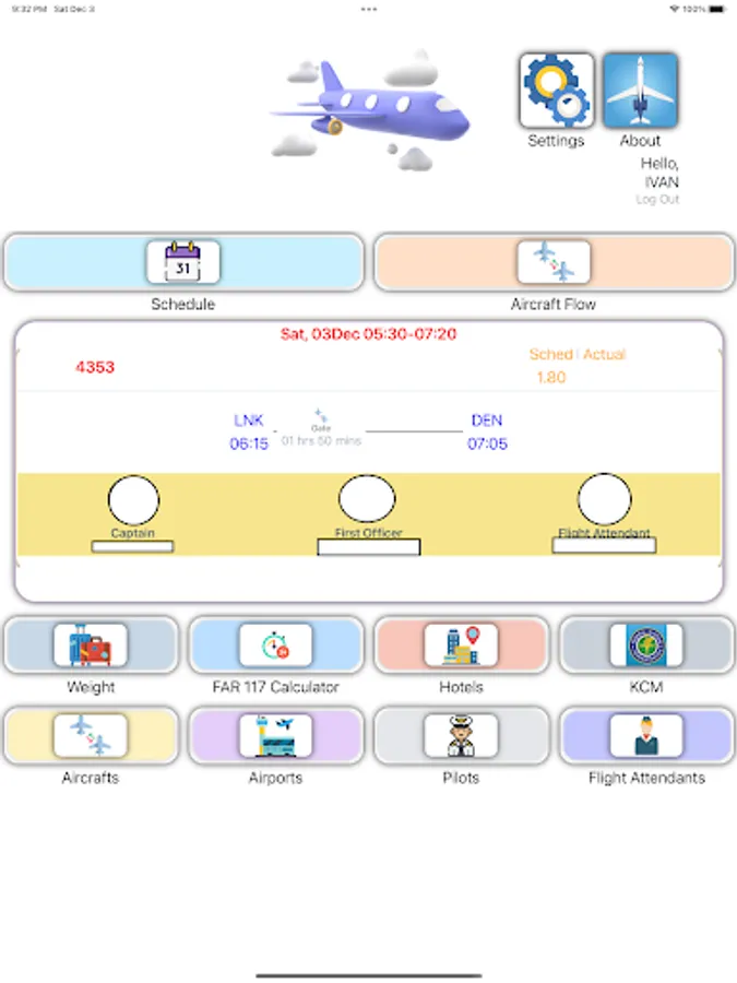 The purpose of this app is to reduce a pilot's workload leading up to departure time. Features include the ability to auto-calculate weight and balance to determine how much the aircraft is overweight by and how many bags to remove, FAR 117 FDP calculation for perf init cargo number, and more.