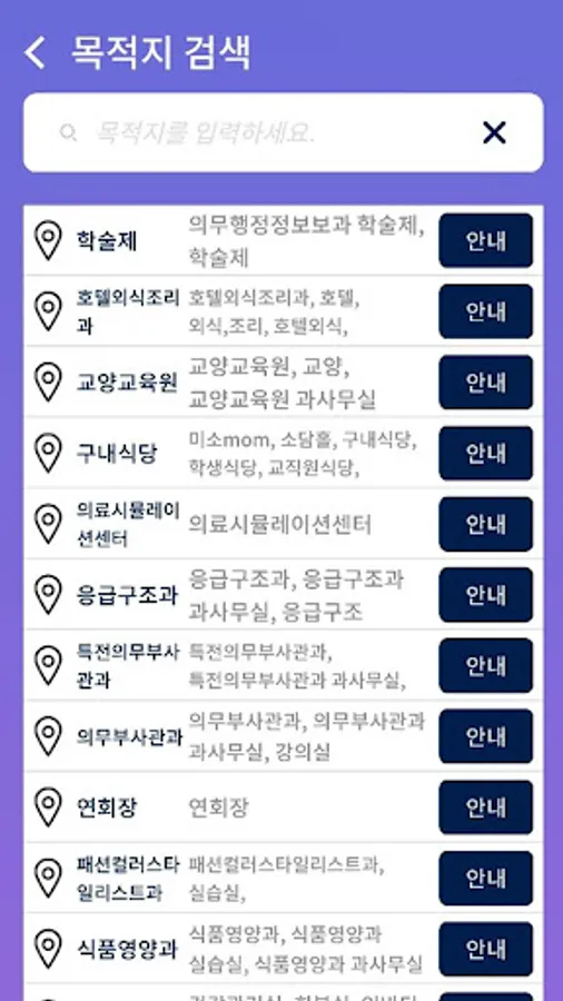 #Destination Search: Search for related keywords related to buildings, departments, departments, and jobs in the school to guide you through AR and map directions.