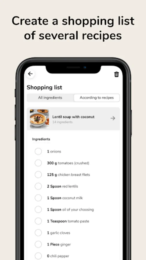 ♥ Create your shopping list from several healthy recipes