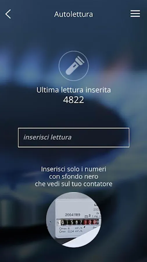 If you read the evening or if the meter is located in a dark area, you can turn on the smartphone flashlight with this command on CountBox.